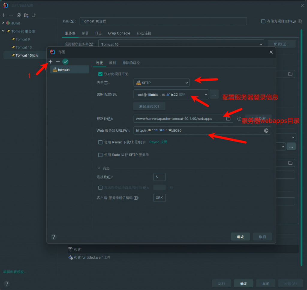 点击上图中 SSH配置 右边的 … ,会出现 部署 对话框: