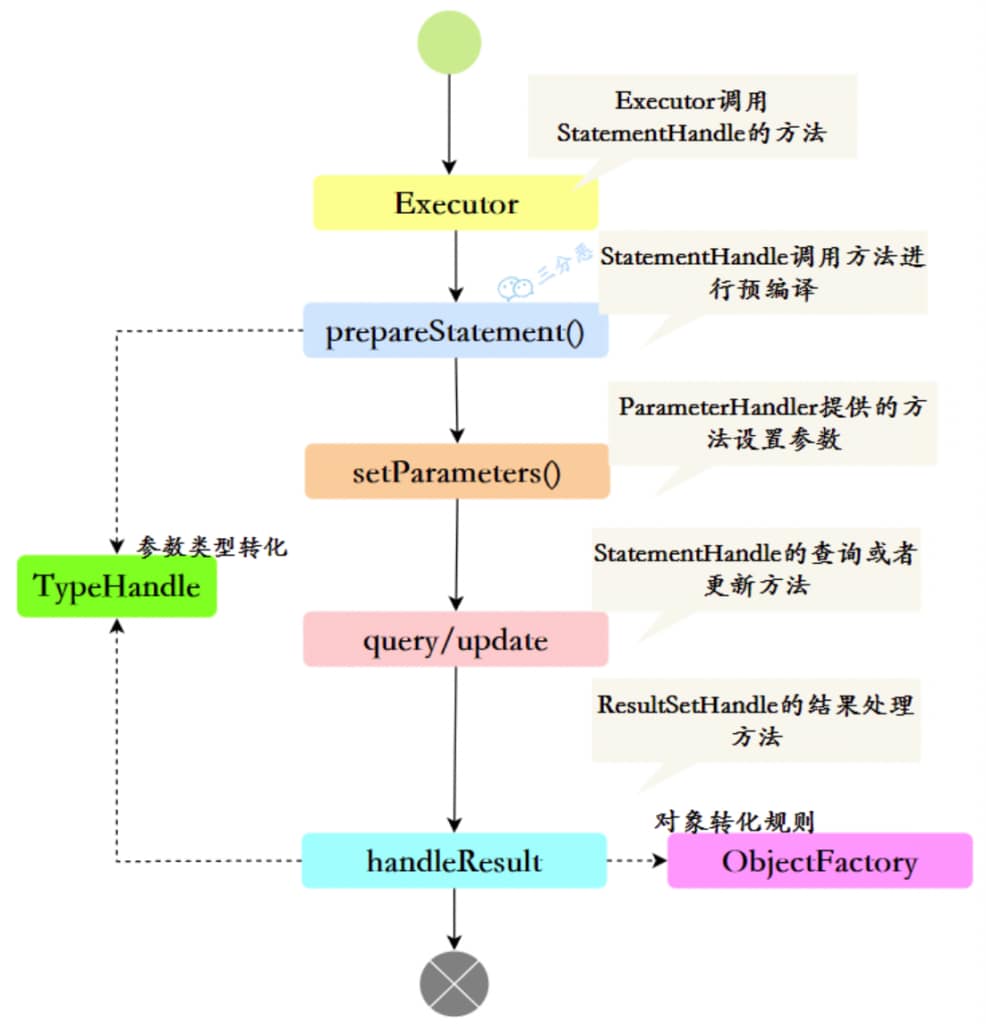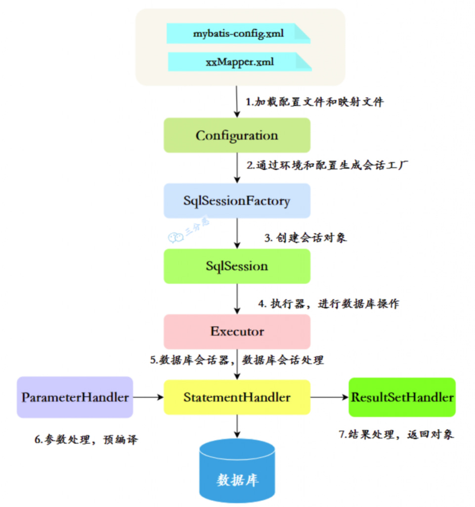 - StatementHandler:数据库会话器,串联起参数映射的处理和运行结果映射的处理。