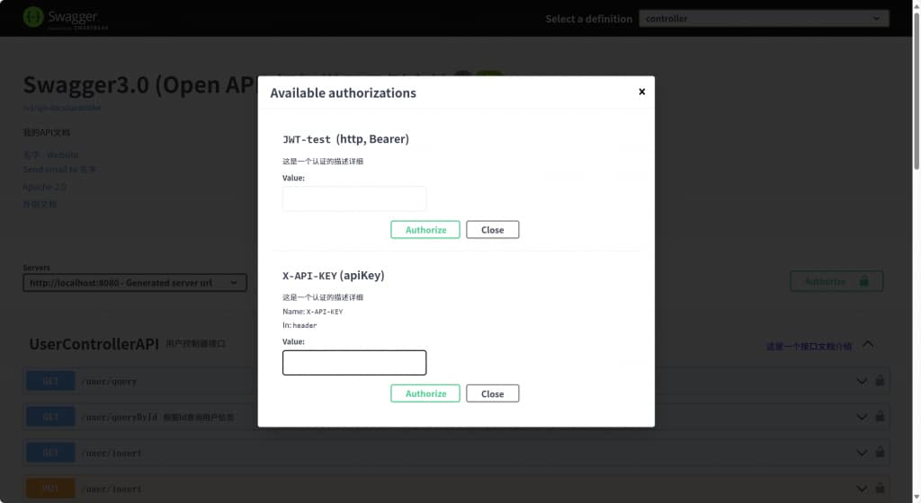 swagger访问地址:http://localhost:8080/swagger-ui.html