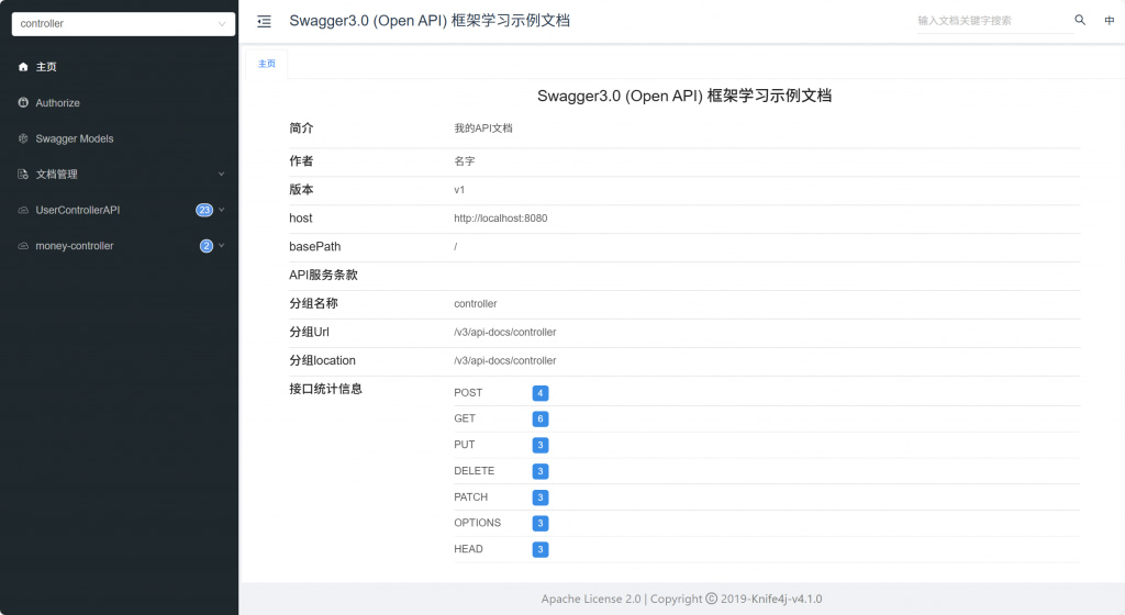 knife4j 访问地址:http://localhost:8080/doc.html