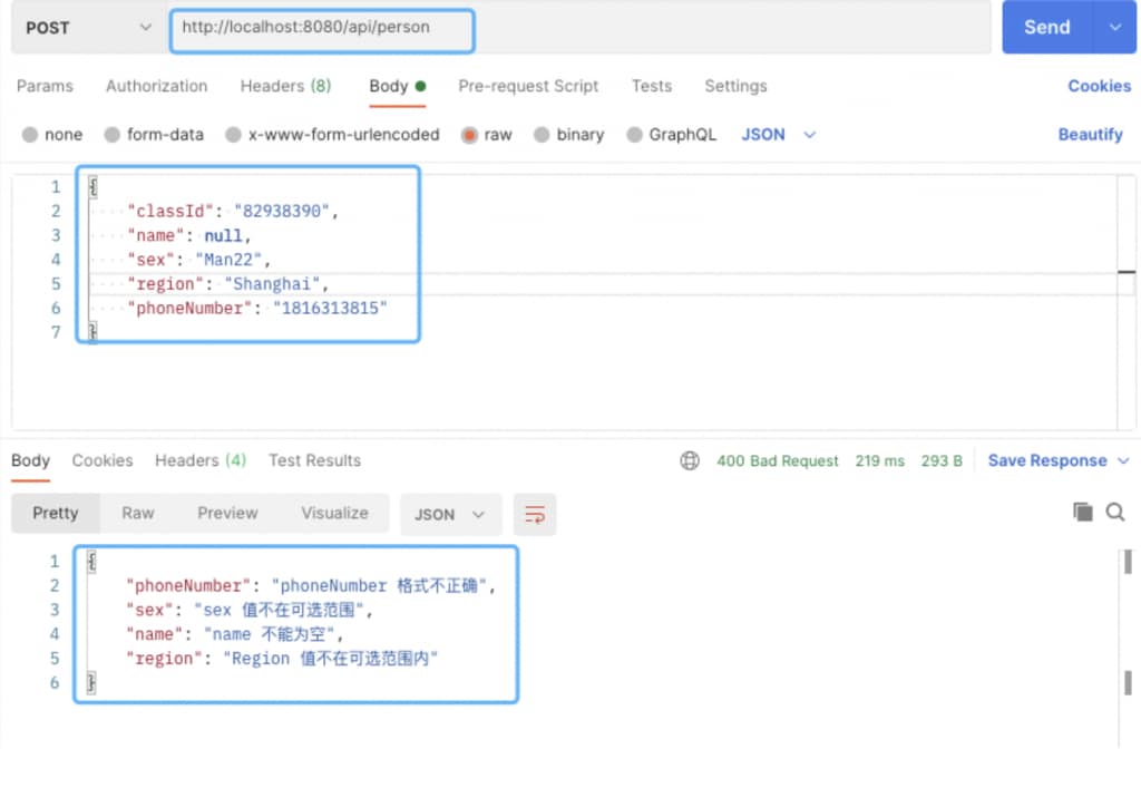 Set<ConstraintViolation<PersonRequest>> violations = validator.validate(personRequest);