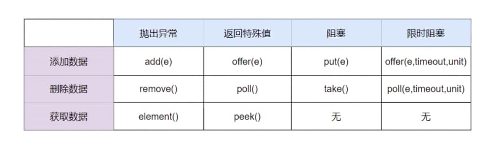 ArrayBlockingQueue 阻塞式获取和新增元素的方法为: