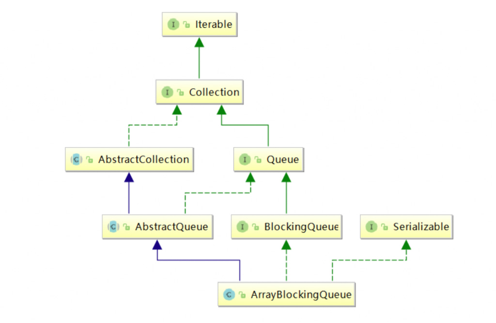 ArrayBlockingQueue 阻塞式获取和新增元素对应的就是生产者-消费者模型,虽然它也支持非阻塞式获取和新增元素(例如 poll() 和 offer(E e) 方法,后文会介绍到),但一般不会使用。