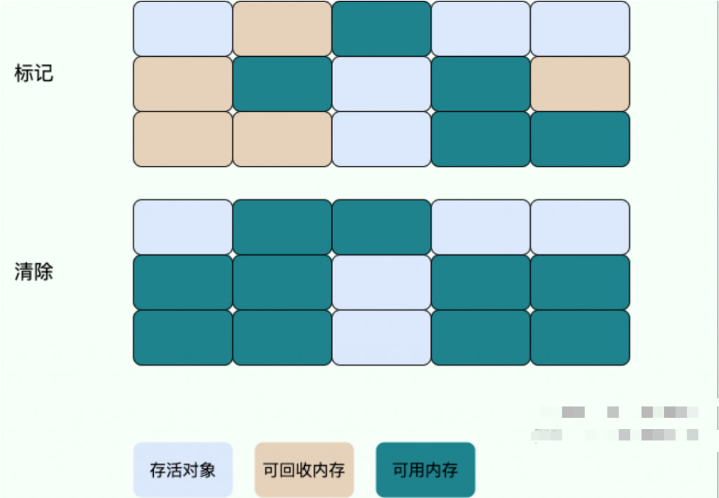 如果按照前者的理解,整个标记-清除过程大致是这样的: