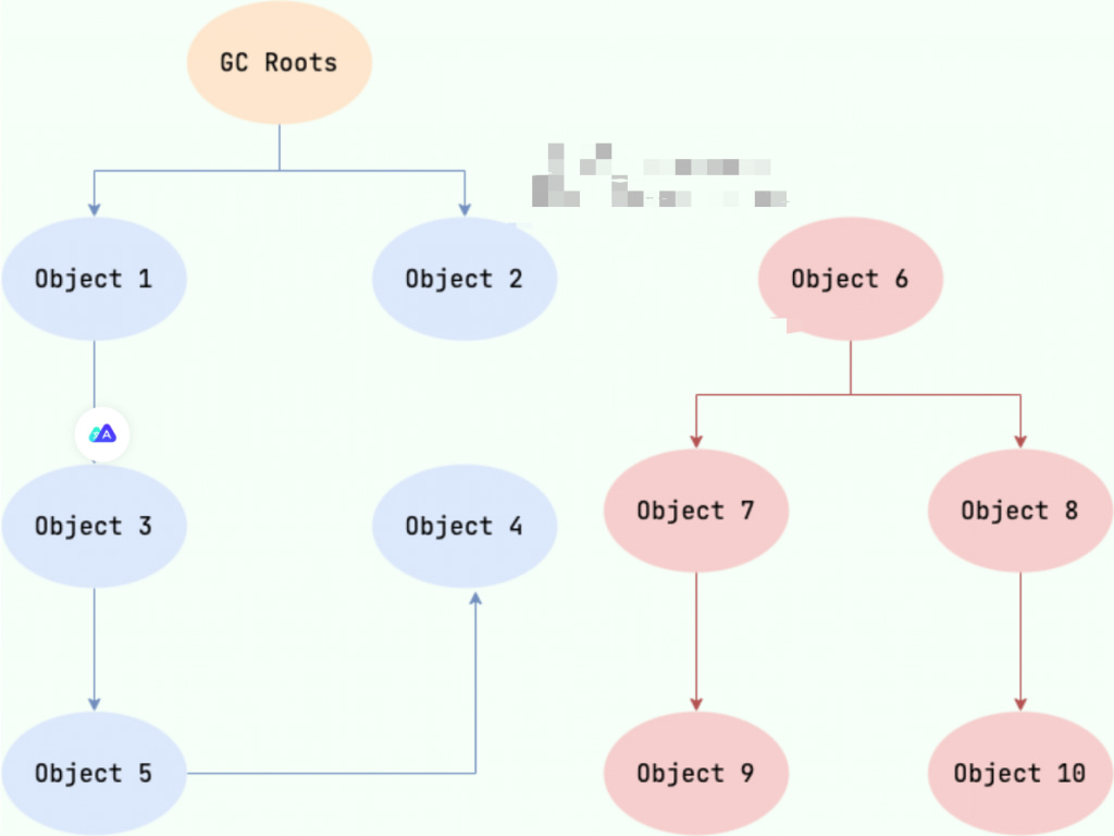下图中的 Object 6 ~ Object 10 之间虽有引用关系,但它们到 GC Roots 不可达,因此为需要被回收的对象。