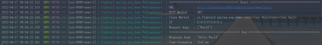 执行结果:可以看到日志打印了入参、出参和执行时间