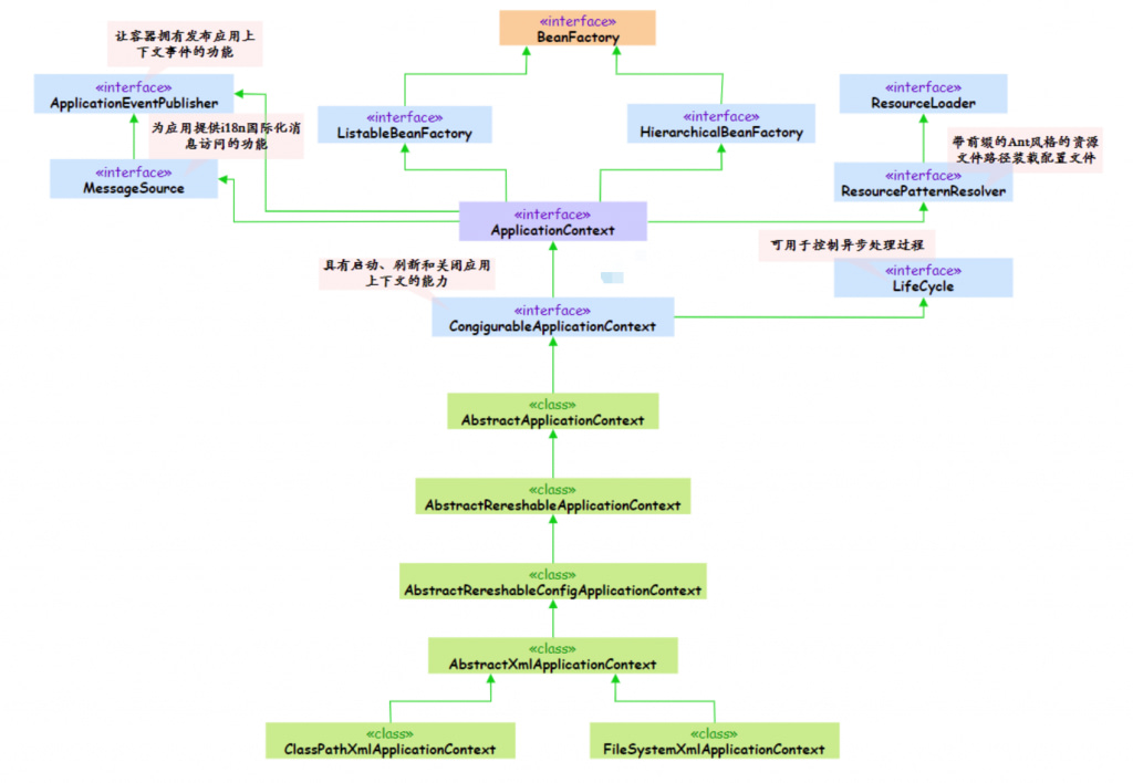 ApplicationContext 继承了HierachicalBeanFactory和ListableBeanFactory接口,在此基础上,还通过其他的接口扩展了BeanFactory的功能,包括: