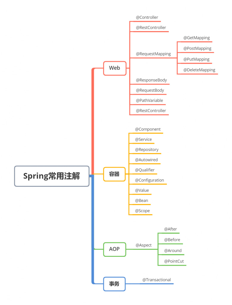 Spring有很多模块,甚至广义的SpringBoot、SpringCloud也算是Spring的一部分,我们来分模块,按功能来看一下一些常用的注解: