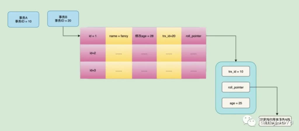 - 5.在该记录行的 DB_ROLL_PTR 指针所指向的