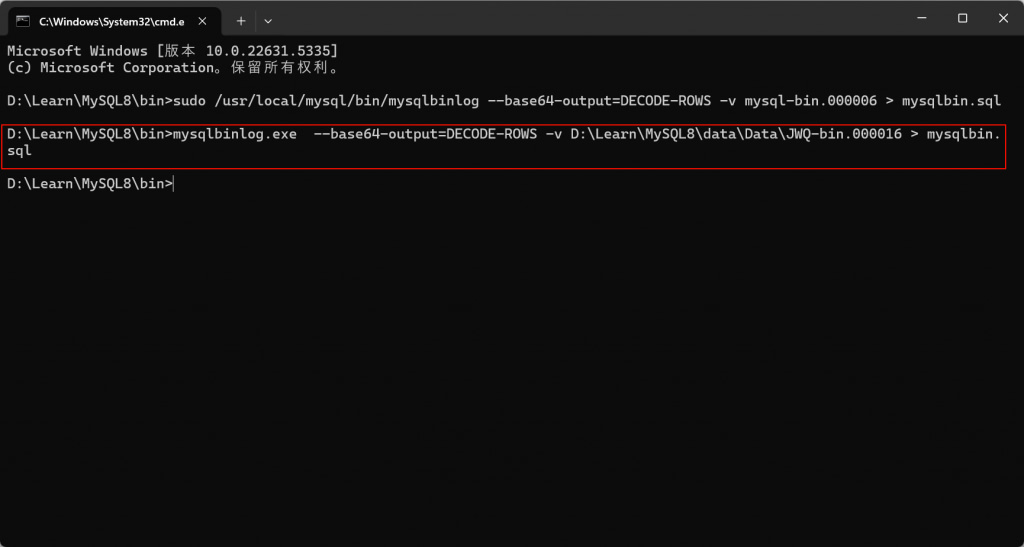 查看翻译出来的mysqlbin.sql文件