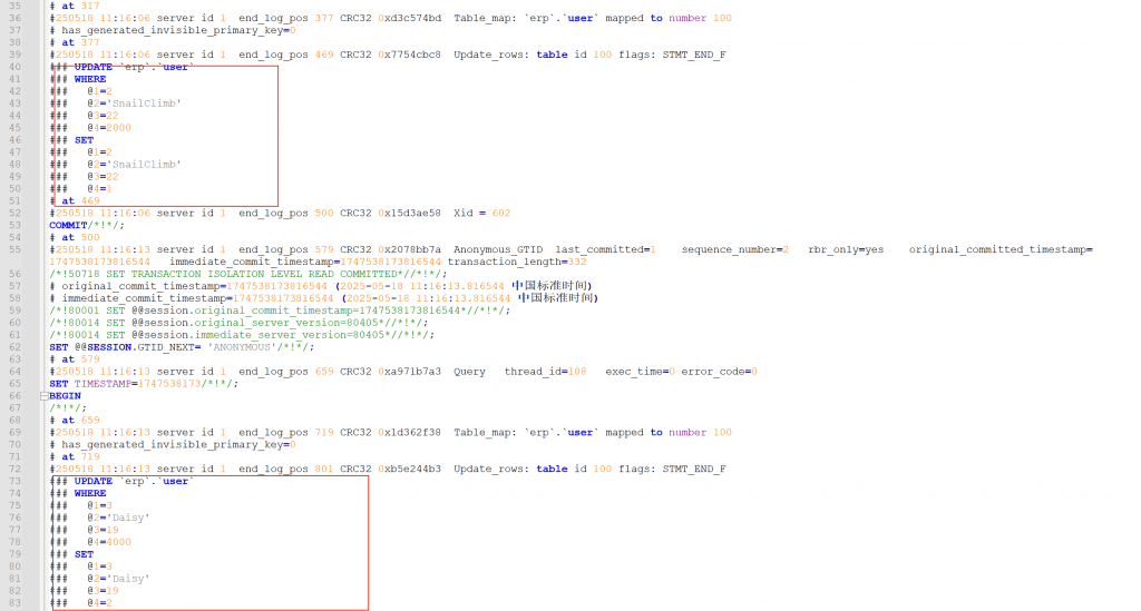 我们通过查看一段binlog来理解。