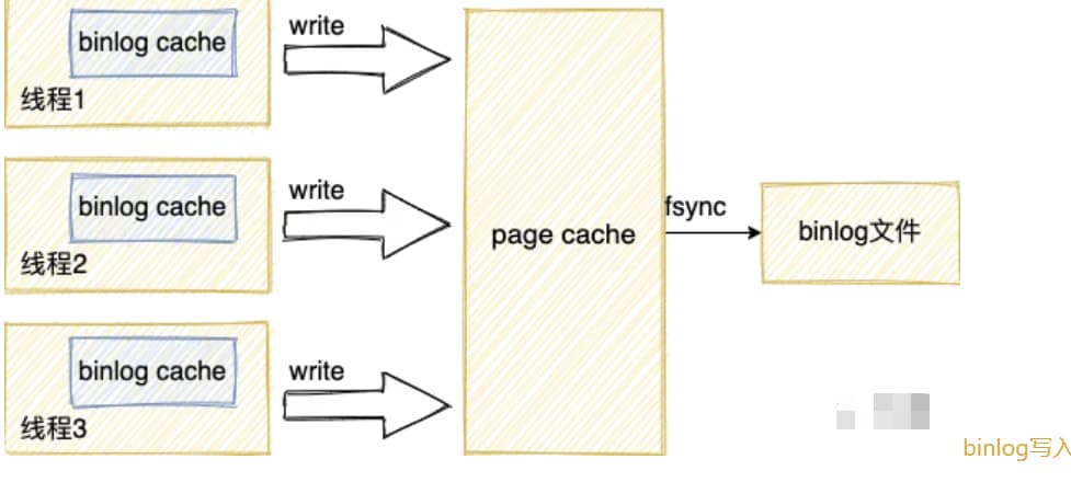 从上图可以看到,每个线程都有自己的binlog cache,但是共用同一份binlog文件。