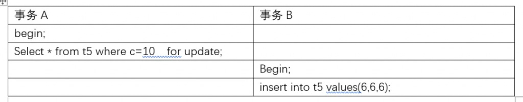 如果一个会话占有了索引记录R的共享/排他锁,其他会话不能立刻在R之前的区间插入新的索引记录。