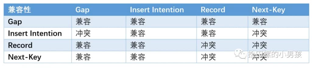 意向锁仅仅表明意向的锁,意向锁之间并不会互斥,是可以并行的,整体兼容性如下图所示: