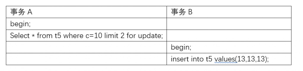 这是为什么呢?跟上个例子,怎么事务会话B的SQL却不会阻塞了,事务会话A的select只是加多了一个limit 2。