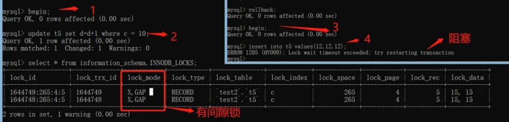lock_mode X locks gap before rec表示X型的gap锁lock_mode X locks rec but not gap表示 X型的记录锁(Record Lock)lock mode X一般表示 X型临键锁(next-key 锁)