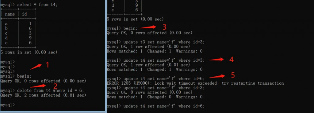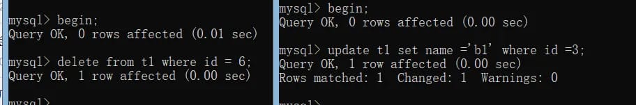 我们开启A、B事务,执行流程如下: