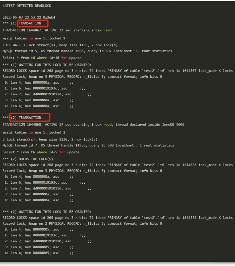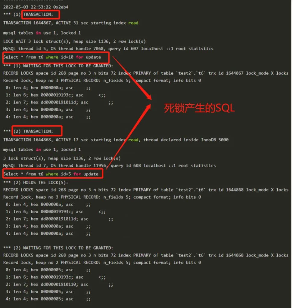TRANSACTION - 分析死锁日志,查看正在执行的SQL