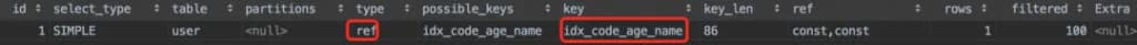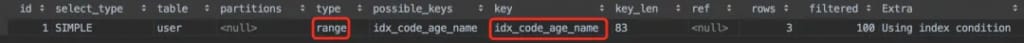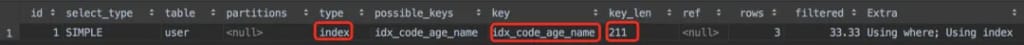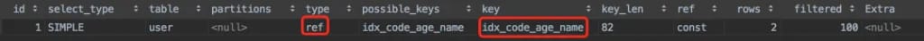 之前我已经给code、age和name这3个字段建好联合索引:idx_code_age_name。