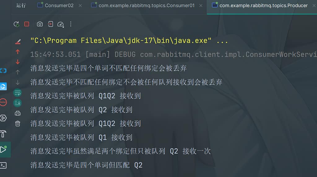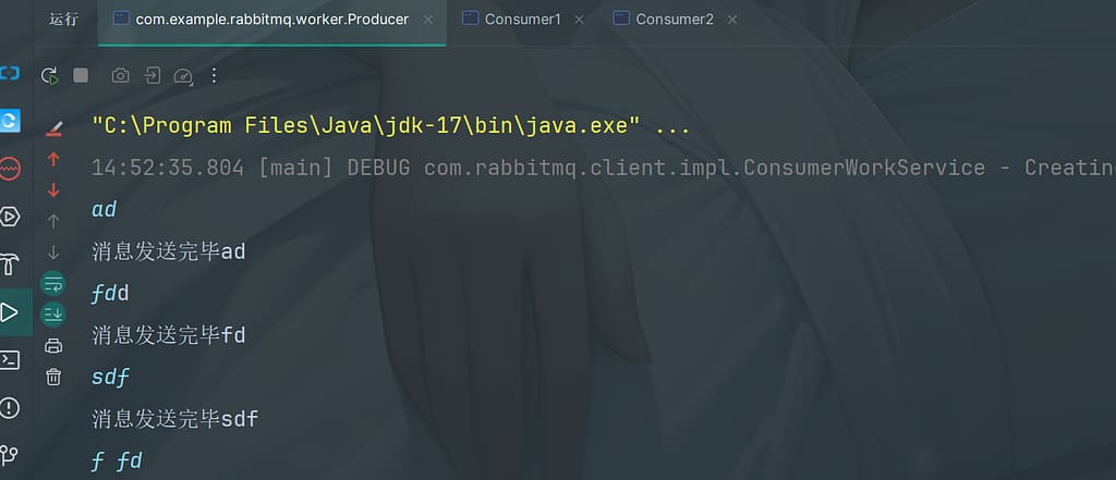 运行程序,观察消息在rabbitmq-server服务中的过程