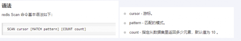 SCAN 命令是一个基于游标的迭代器,每次被调用之后, 都会向用户返回一个新的游标, 用户在下次迭代时需要使用这个新游标作为 SCAN 命令的游标参数, 以此来延续之前的迭代过程。