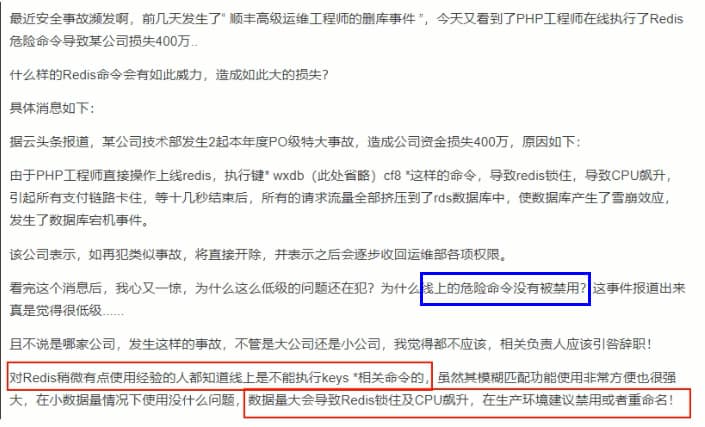 keys * 、flushall、flushdb在正在的工作中肯定会被禁止使用,在redis.conf 中配置禁用