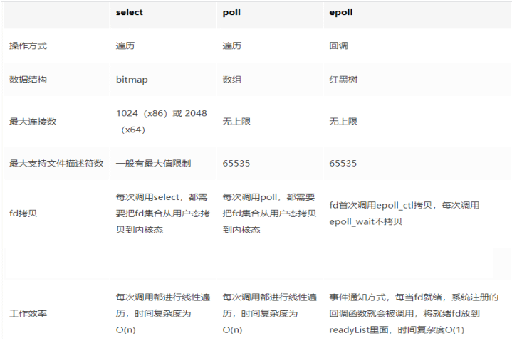 epoll:将用户socket对应的文件描述符(FileDescriptor)注册进epoll,然后epoll帮你监听哪些socket上有消息到达,这样就避免了大量的无用操作。此时的socket应该采用非阻塞模式。这样,整个过程只在调用select、poll、epoll这些调用的时候才会阻塞,收发客户消息是不会阻塞的,整个进程或者线程就被充分利用起来,这就是事件驱动,所谓的reactor反应模式。