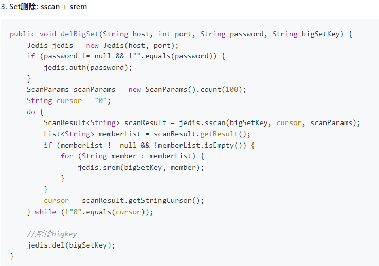 set:使用sscan每次获取部分元素,在使用srem删除每个元素