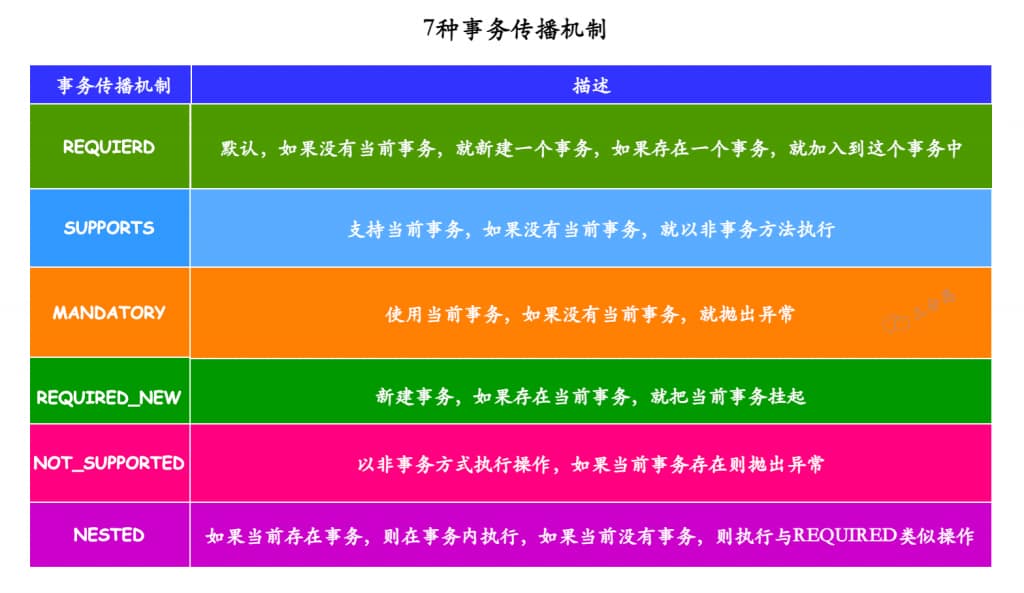 Spring 事务的传播机制说的是,当多个事务同时存在的时候——一般指的是多个事务方法相互调用时,Spring 如何处理这些事务的行为。