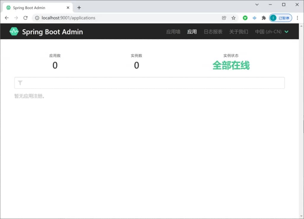 启动项目之后,就可以看到 SBA 的主页了,如下图所示: