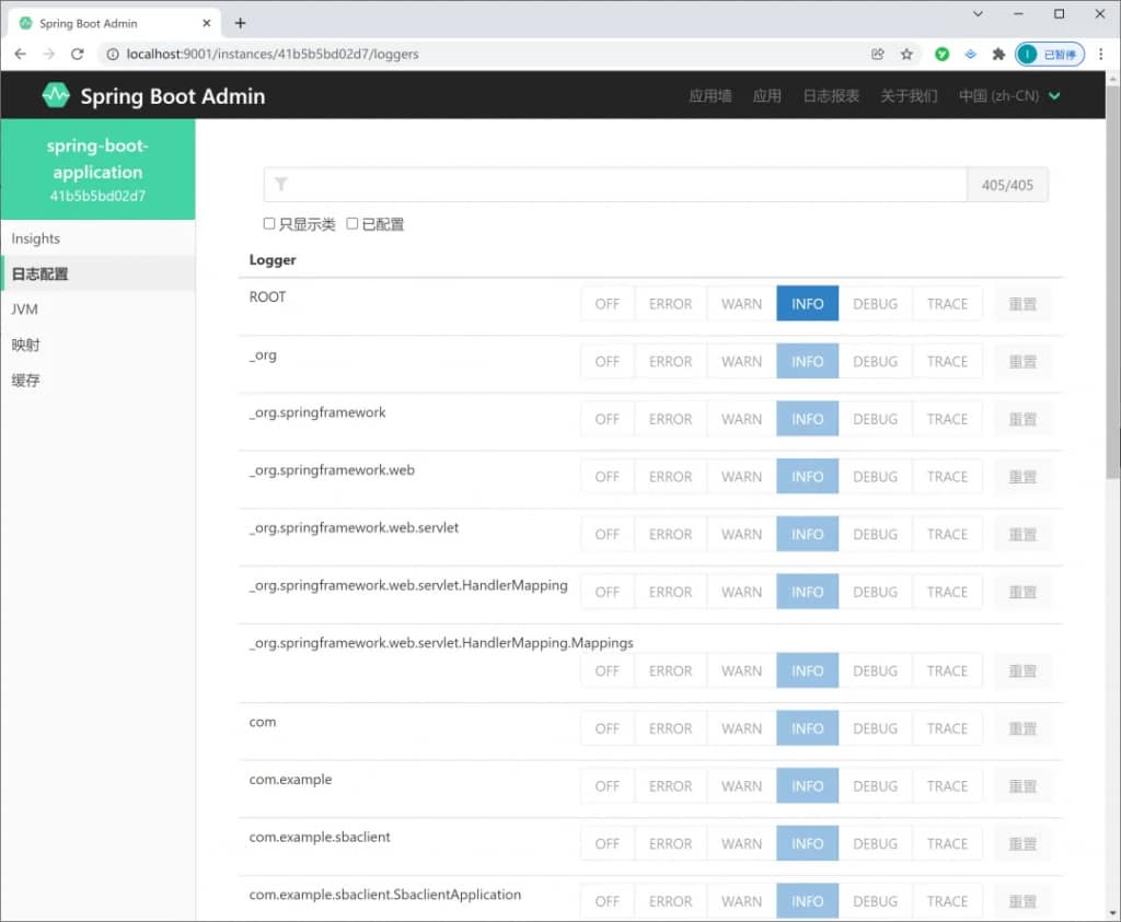 • 可以查看和配置 Spring Boot 项目中的日志级别;