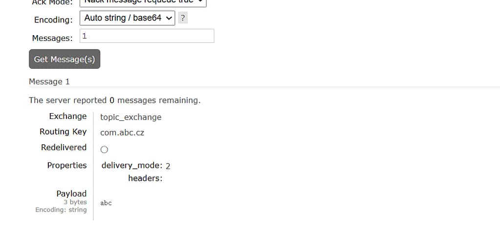 可以看到只有满足路由key条件的queue1收到了消息