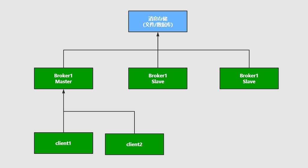 将多个消息服务器Broker连接共享一块消息存储空间,其中Master节点负责消息的写入。客户端会将消息写入到Master节点,一旦Master挂掉,slave节点继续服务,从而形成高可用。
