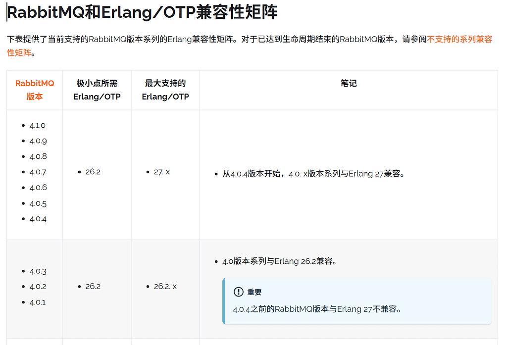 Erlang和RabbitMQ版本对照:Erlang Version Requirements | RabbitMQ