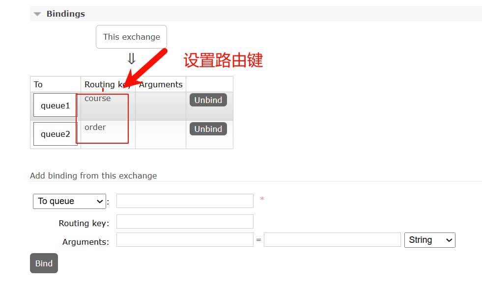 然后绑定队列,设置路由key
