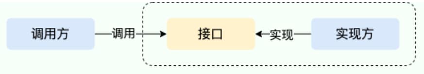 • 当实现方提供了接口和实现,我们可以通过调用实现方的接口从而拥有实现方给我们提供的能力,这就是 API。这种情况下,接口和实现都是放在实现方的包中。调用方通过接口调用实现方的功能,而不需要关心具体的实现细节。